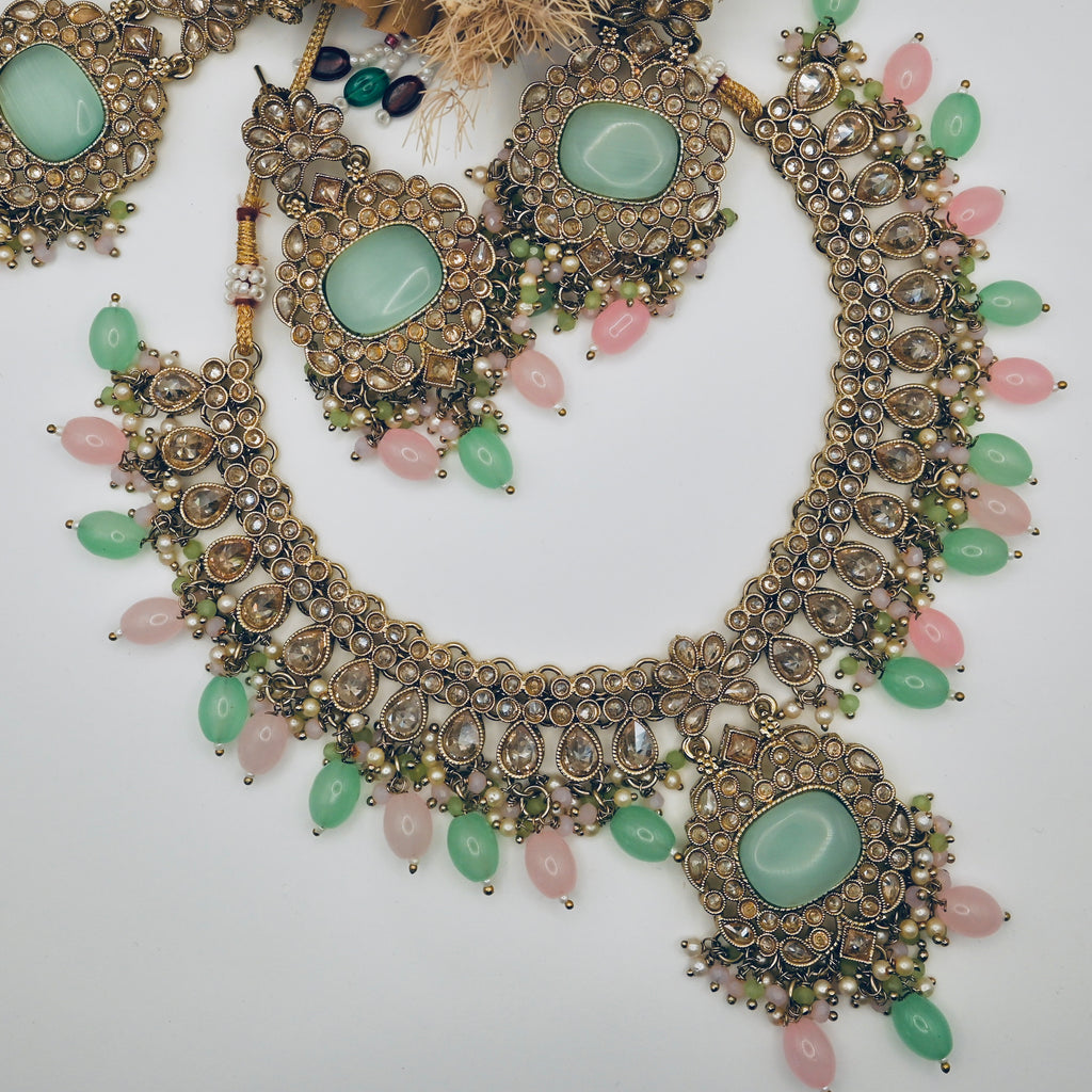 GEORGIA Champagne Stone heavy set suitable for bridal or heavy look. Necklace, earrings and mangtika