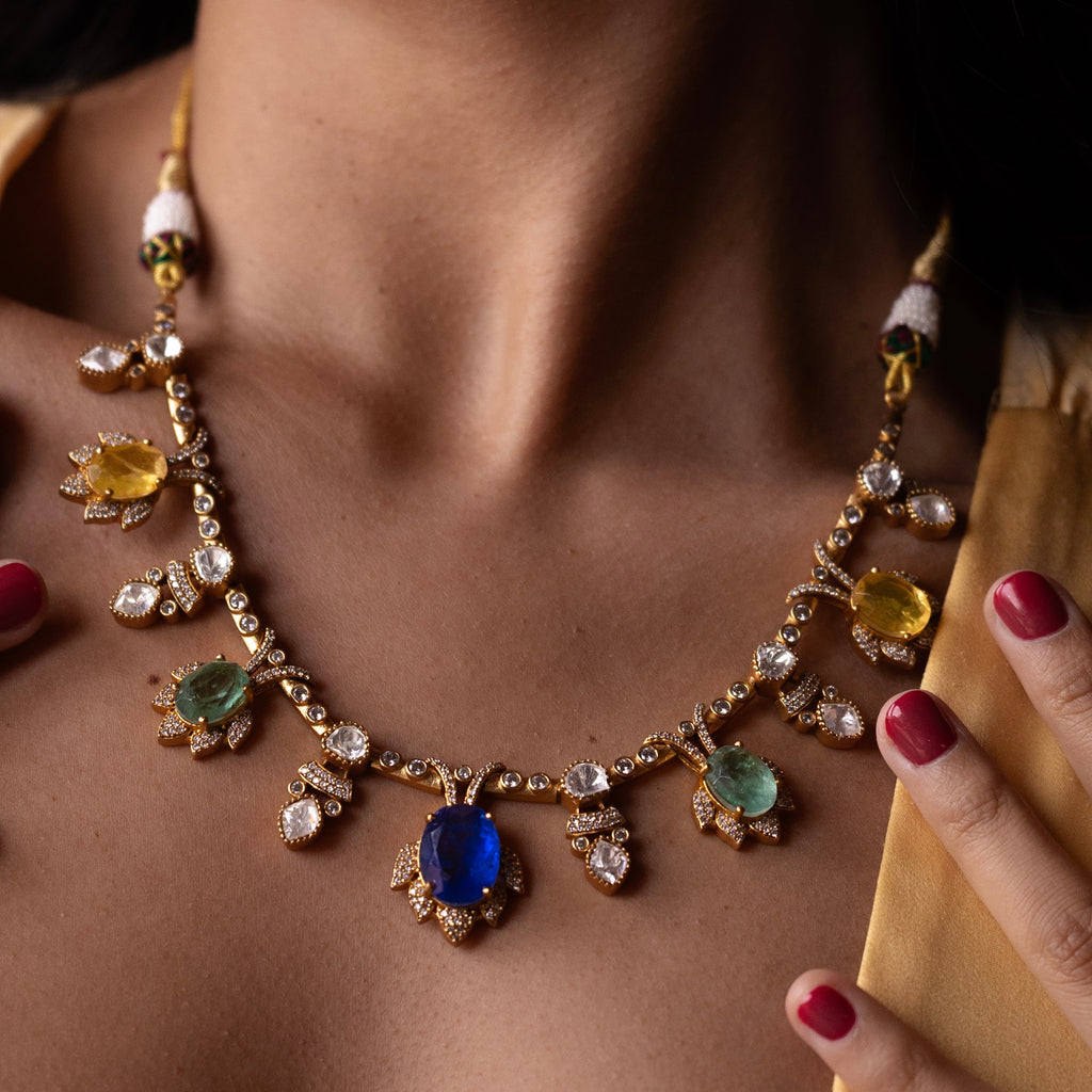 SONATA awakens your spirit with vibrant colour and timeless elegance. Set in a symphony of doublet and Moissanite stones and delicate gold detailing, this piece doesn’t just accessorise — it empowers.